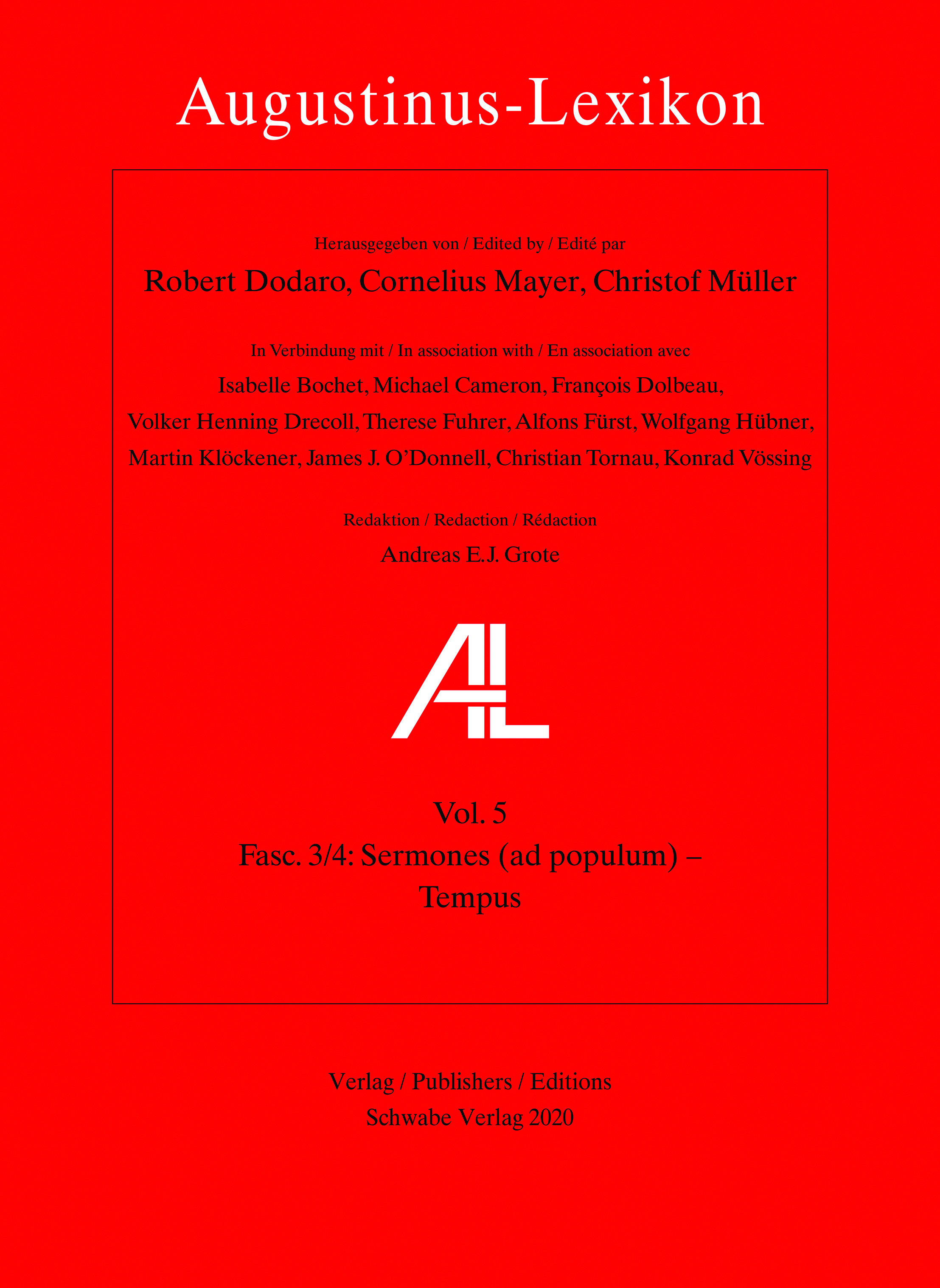 Faszikel 3/4 von Band 5 ist herausgegeben von Robert Dodaro, Cornelius Mayer und Christof Müller in Verbindung mit Isabelle Bochet, Michael Cameron, François Dolbeau, Volker Henning Drecoll, Therese Fuhrer, Alfons Fürst, Wolfgang Hübner, Martin Klöckener, James J. O’Donnell, Christian Tornau, Konrad Vössing. Redaktion: Andreas E. J. Grote.