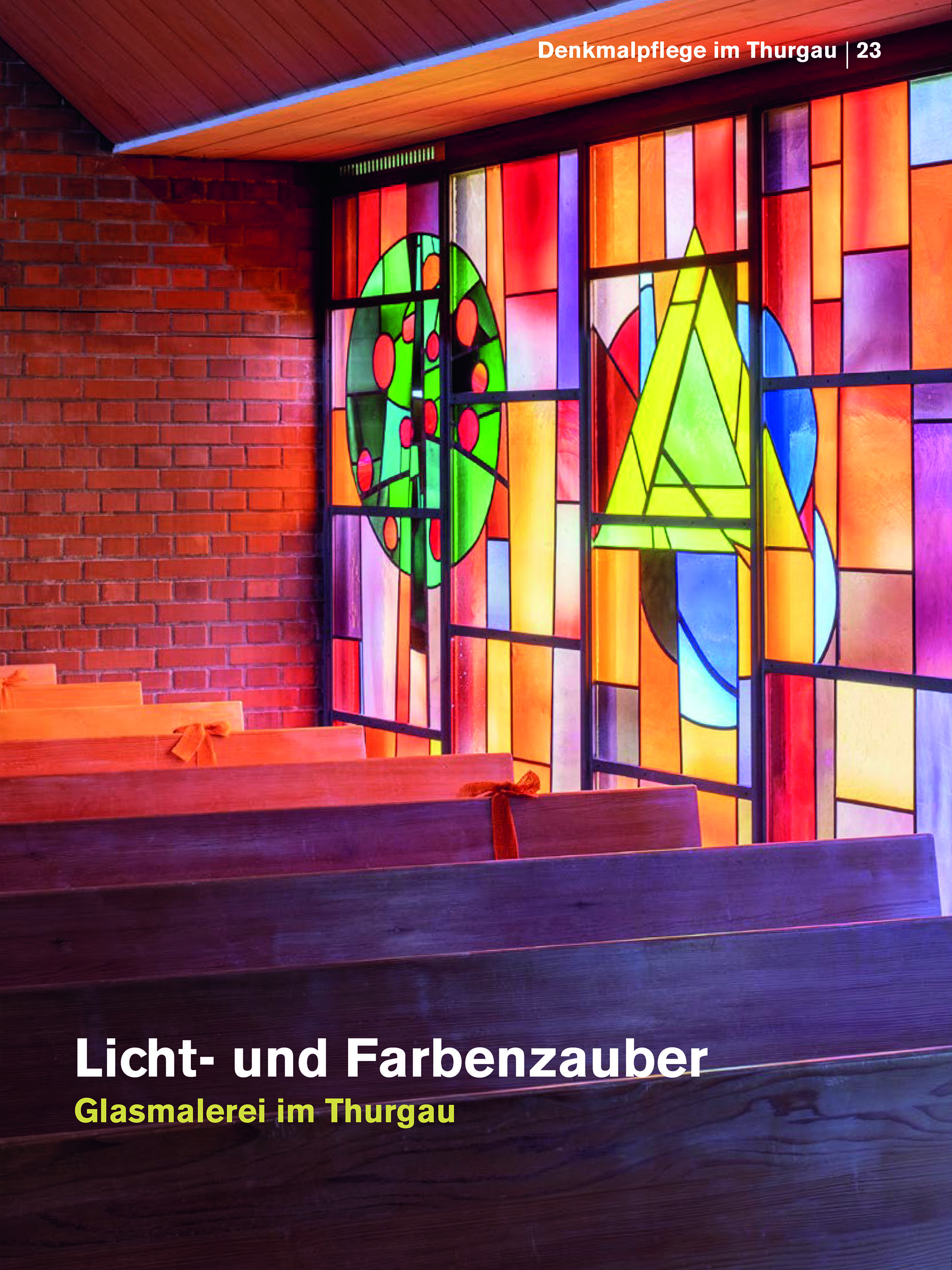 Im Blickpunkt dieses Bandes steht die Glasmalerei. Im ersten Teil werden Bildwerke von der Hochgotik bis in den Jugendstil thematisiert, etwa das Chorfenster in Frauenfeld-Oberkirch (um 1320), der Renaissancezyklus des Klosters Tänikon und die neo-maurischen Fenster im Schloss Castell. Glasgemälde von elf schweizerischen Kunstschaffenden aus dem 20. Jahrhundert, die mit ihrer Farbigkeit und Formensprache die Atmosphäre der sakralen Räume prägen, stehen im Mittelpunkt des zweiten Teils. Unter anderem geht es um Werke von Augusto Giacometti, August Wanner, Ferdinand Gehr, Köbi Lämmler und Walter Burger. Der Blick richtet sich aber auch auf Glasmalerei in profanen Bauten, etwa auf Carl Roeschs Märchen-, Blumen- und Vogelbilder. Eindrückliche Fotografien begleiten die Beiträge. Der dritte Teil des Bandes enthält Berichte über Restaurierungen sowie eine amüsante Geschichte über das Wirken der Baumeister Grubenmann in Weinfelden und gibt Einblicke in den denkmalpflegerischen Alltag.