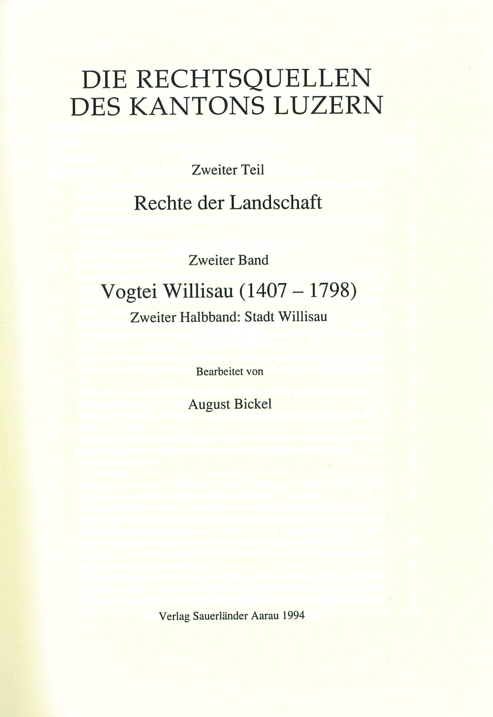 „Der zweite Band der Rechtsquellen der Luzerner Landschaft ist der Vogtei Willisau gewidmet. Sie entstand 1407, als Luzern in Willisau die Herrschaft übernahm. Die Verwaltung des neuerworbenen, umfangreichen und von der Stadt Luzern verhältnismässig weit entfernten Besitzes übertrug der Rat jeweils einem seiner Mitglieder auf Zeit.