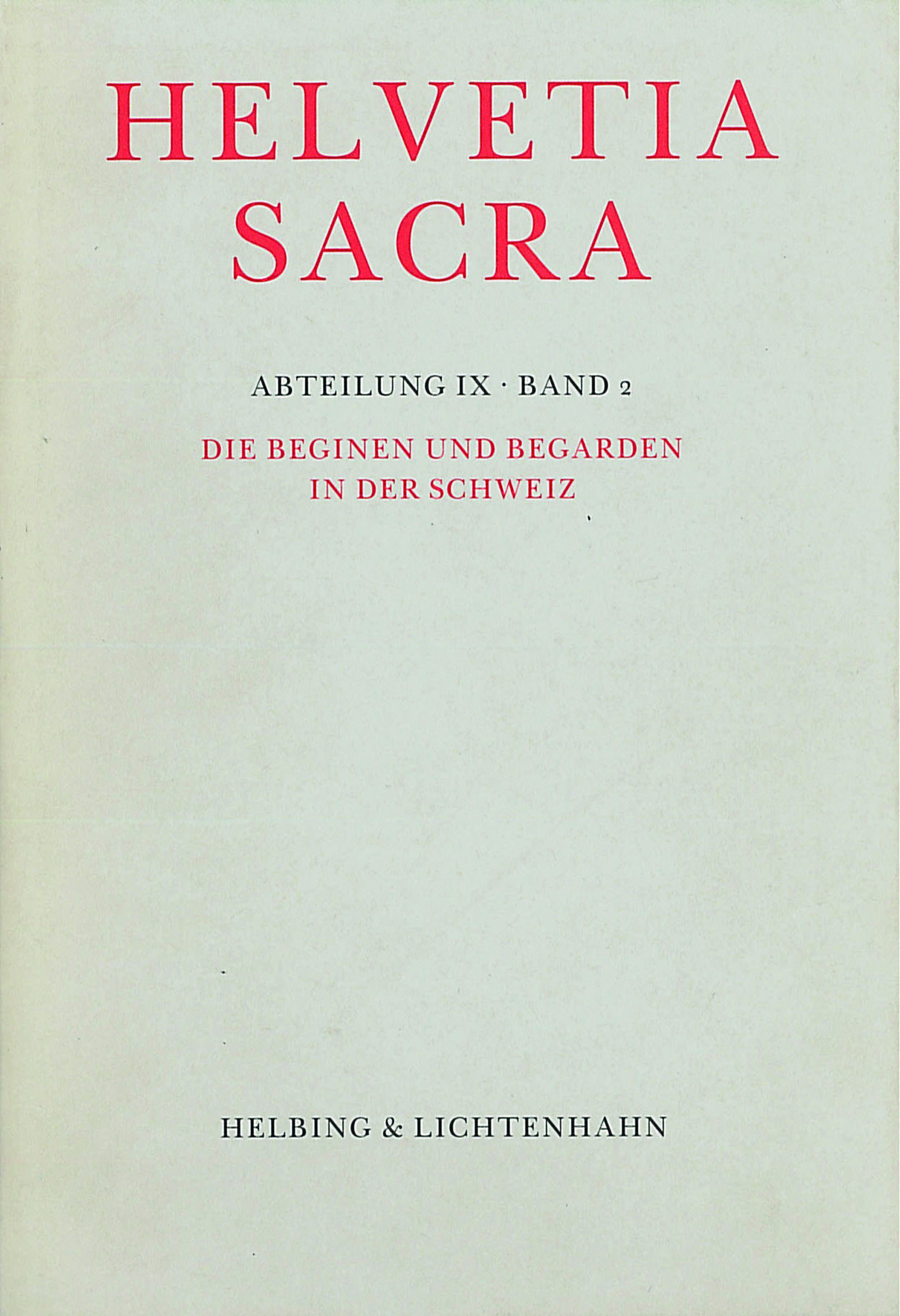 „[…] Zusammen mit den Humiliaten, die in der Schweiz nur mit Gemeinschaften des sogenannten zweiten Ordens, also als religiöse Laien, vertreten waren, bildet der Beginen- und Begardenband die IX. und letzte Abteilung der Helvetia Sacra, und als Band IX/2 schließt er die Reihe der Bände überhaupt ab.
