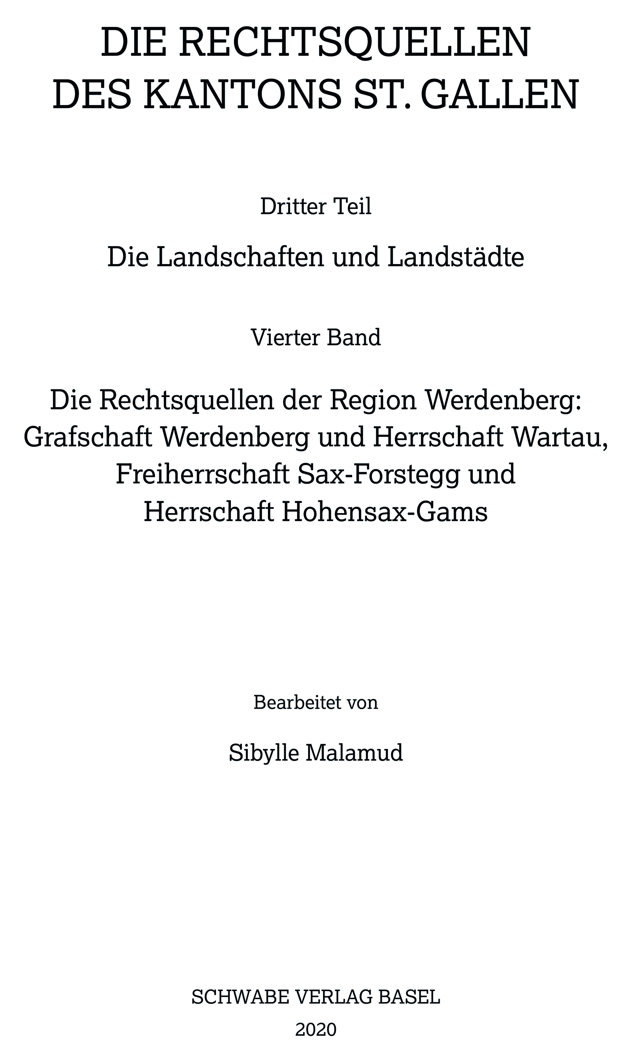 | Reihe | XIV. Die Rechtsquellen des Kanton St. Gallen. Dritter Teil: Die Landschaften und Landstädte |