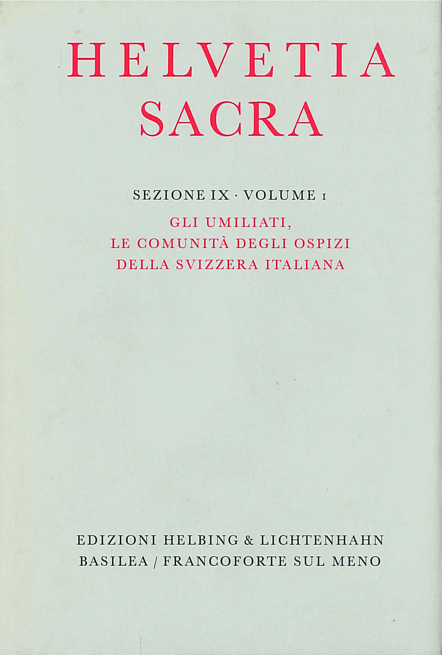 „Questo volume di Helvetia Sacra (HS), il terzo interamente dedicato alle istituzioni ecclesiastiche della Svizzera italiana, è composto da due parti distinte: nella prima si tratta delle case dell’ordine degli Umiliati e nella seconda degli ospizi gestiti da fratelli e sorelle radunati in comunità di tipo monastico. Questa divisione è stata frutto delle ricerche preliminari, iniziate a partire dalla primavera del 1987, quando la redazione di HS di Basilea ha avviato la preparazione di quest’opera. […]”