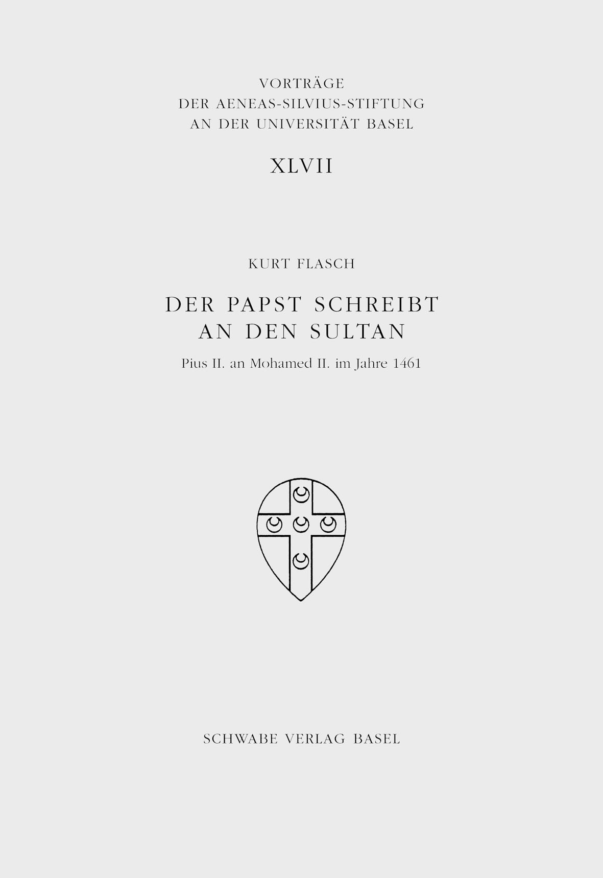 Die Aeneas-Silvius-Vorlesung war 1960 das Geschenk der Basler Katholiken zum 500-Jahr-Jubiläum der Universität Basel. Einmal im Jahr sollte eine öffentliche Vorlesung eines hervorragenden Wissenschaftlers gehalten und anschliessend angemessen publiziert werden. Zum 50-jährigen Bestehen und im 550. Jahr der Universität bat die Aeneas-Silvius-Stiftung den kompetentesten Spezialisten für mittelalterliche Philosophie zum Vortrag: Kurt Flasch aus Mainz, den langjährigen Ordinarius für Philosophie an der Universität Bochum und Autor eines eindrücklichen publizistischen Lebenswerks zur Philosophie von Spätantike und Mittelalter, zu Augustinus und Nikolaus von Kues, zu Meister Eckhart, zu Dante und Boccaccio mit unnachahmlichen Übersetzungen der Werke, kurz «Deutschlands brillantesten Philosophiehistoriker» (Die Welt). Der gehaltene Vortrag stellt einen Brief, «ein stilistisches Meisterwerk der humanistischen Theologie», von Papst Pius II. an den Sultan Mohamed II. im Jahre 1461 vor und ordnet ihn in den historischen Kontext ein.