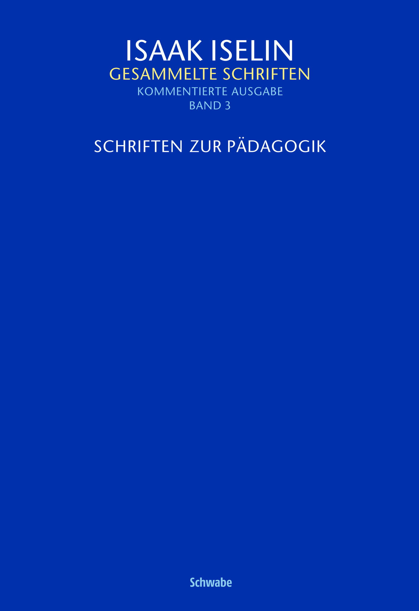 Die Beschäftigung mit pädagogischen Themen entsprang mehrheitlich konkreten Projekten und Absichten Iselins, der sich neben der Elitenerziehung schon früh der Volksbildung – darunter auch der Mädchenerziehung – zuwandte. Zwar fehlt bei Iselin eine als solche gekennzeichnete, eigene pädagogische Theorie; allerdings machen seine pädagogischen Schriften in ihrer Gesamtheit ein Textkorpus aus, welches wegweisende Gedanken zu Erziehung, Bildung, Schule oder Schulwesen umfasst und in seiner Vielfalt überrascht. Der Band enthält neben den bekannteren Einzelschriften wie dem Versuch über die Verbesserung der öffentlichen Erziehung sowohl veröffentlichte Briefwechsel (zum Beispiel mit Johann Kaspar Lavater über Basedows Elementarwerk oder mit Ulysses von Salis über das Philanthropin Marschlins) als auch bislang seltener rezipierte Beiträge aus Iselins Zeitschrift Ephemeriden der Menschheit (wie den Entwurf einer erlauchten Akademie, für Söhne der Fürsten und der Grossen). Iselins Schriften zur Erziehung stiessen bei Zeitgenossen wie Nicolai, Schlosser oder Pestalozzi auf grosses Interesse – auch deshalb gilt es Iselin als Pädagogen der Schweizer Aufklärung (neu) zu entdecken.