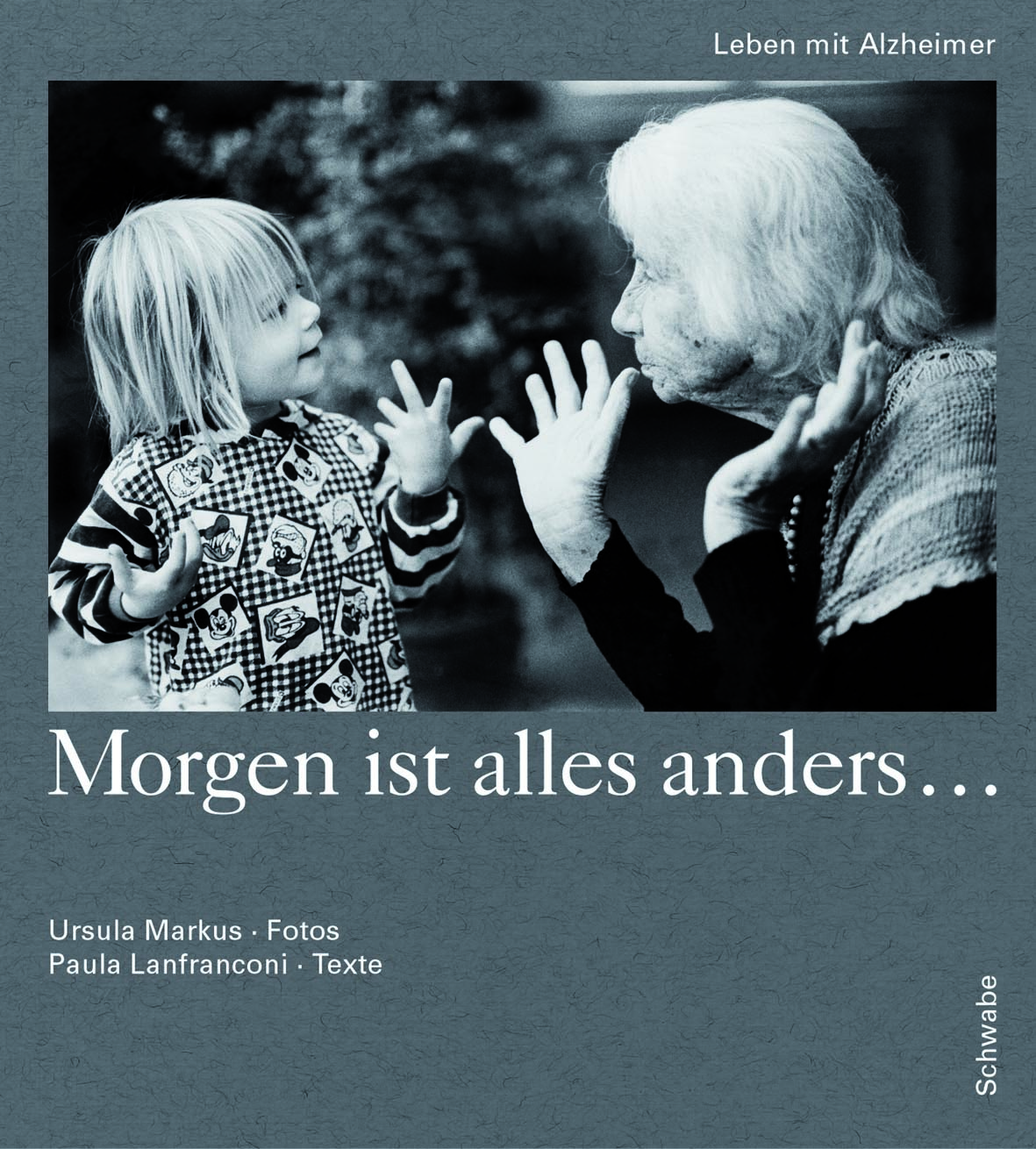 Der Bildteil stammt von der Fotografin Ursula Markus. Sie kennt die Krankheit aus eigener Erfahrung, hat sie doch ihre Mutter auch mit der Kamera durch die Krankheitsjahre begleitet. Darüber hinaus hat Ursula Markus zahlreiche Szenen aus dem Alltag anderer Demenzkranker fotografiert. Einige dieser Bilder machen nachdenklich, auch traurig. Doch überraschend viele zeigen lachende, von Vitalität und Lebensfreude erfüllte Gesichter.