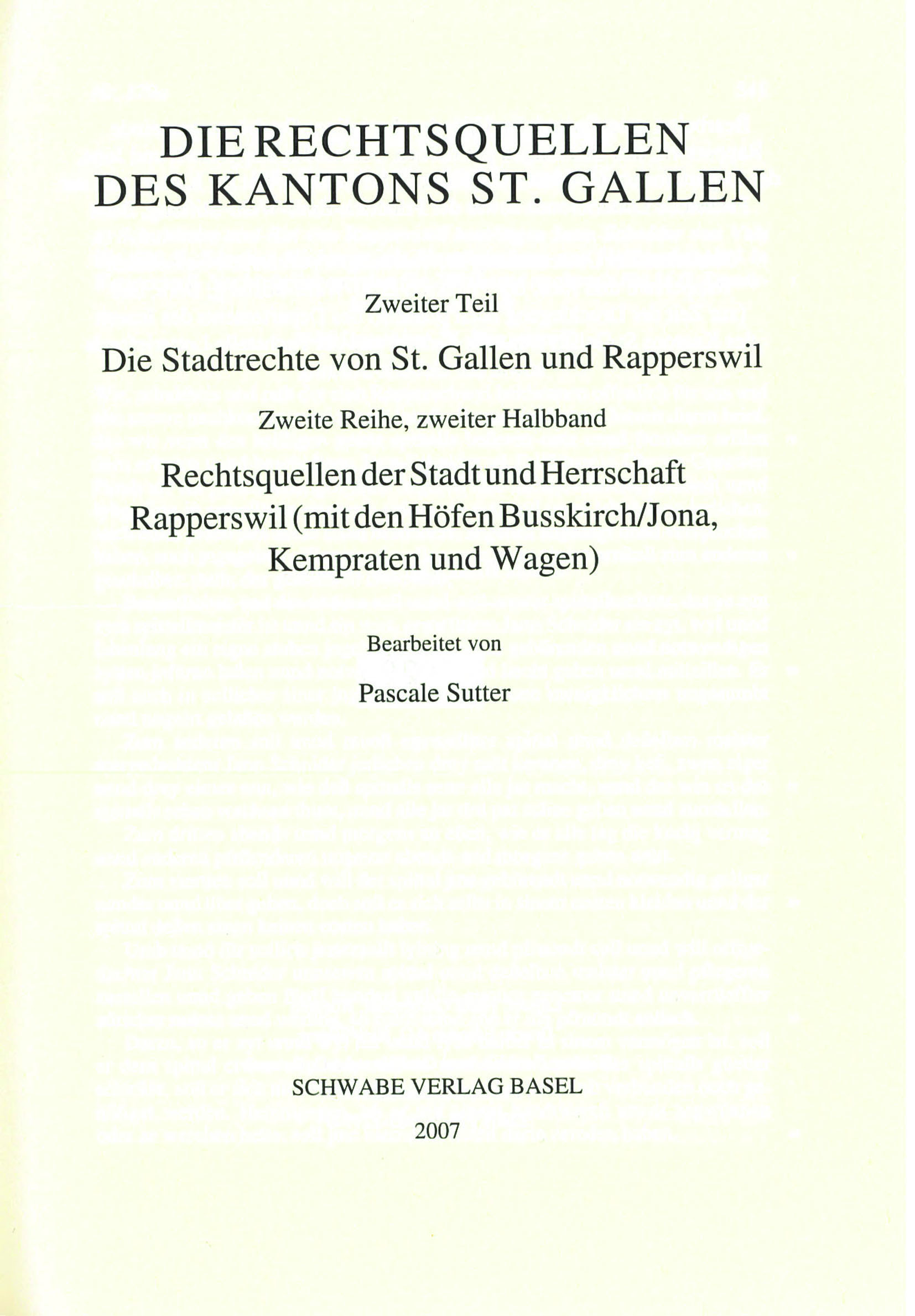 | Reihe | XIV. Abteilung: Die Rechtsquellen des Kantons St. Gallen. Zweiter Teil: Die Stadtrechte von St. Gallen und Rapperswil, 2. Reihe |