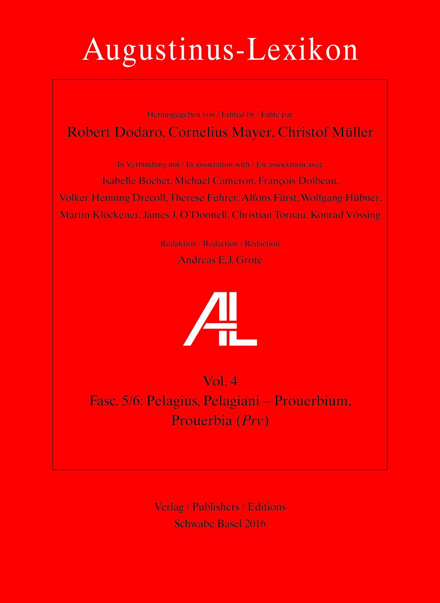 Herausgegeben von Robert Dodaro, Cornelius Mayer und Christof Müller in Verbindung mit Isabelle Bochet, G. Michael Cameron, François Dolbeau, Volker Henning Drecoll, Erich Feldmann †, Alfons Fürst, Therese Fuhrer, Wilhelm Geerlings †, Reinhart Herzog †, Wolfgang Hübner, Martin Klöckener, Serge Lancel †, Goulven Madec †, Gerard J. P. O’Daly, James J. O’Donnell, Alfred Schindler †, Christian Tornau, Konrad Vössing, Otto Wermelinger, Antonie Wlosok †. Redaktion: Karl-Heinz Chelius †, Andreas E. J. Grote