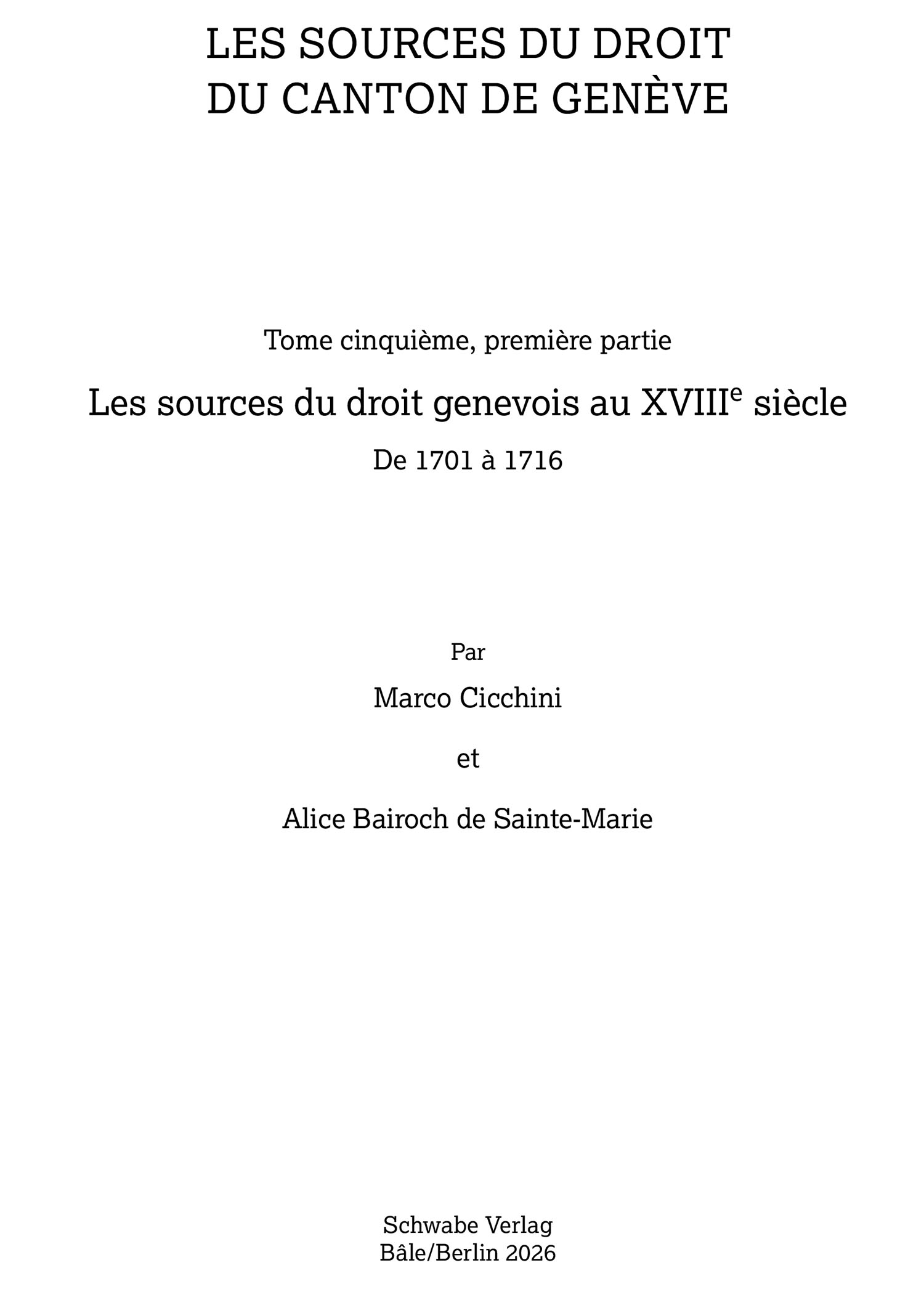 Tome 5 : Les sources du droit genevois au XVIIIe siècle, Première partie : De 1701 à 1716