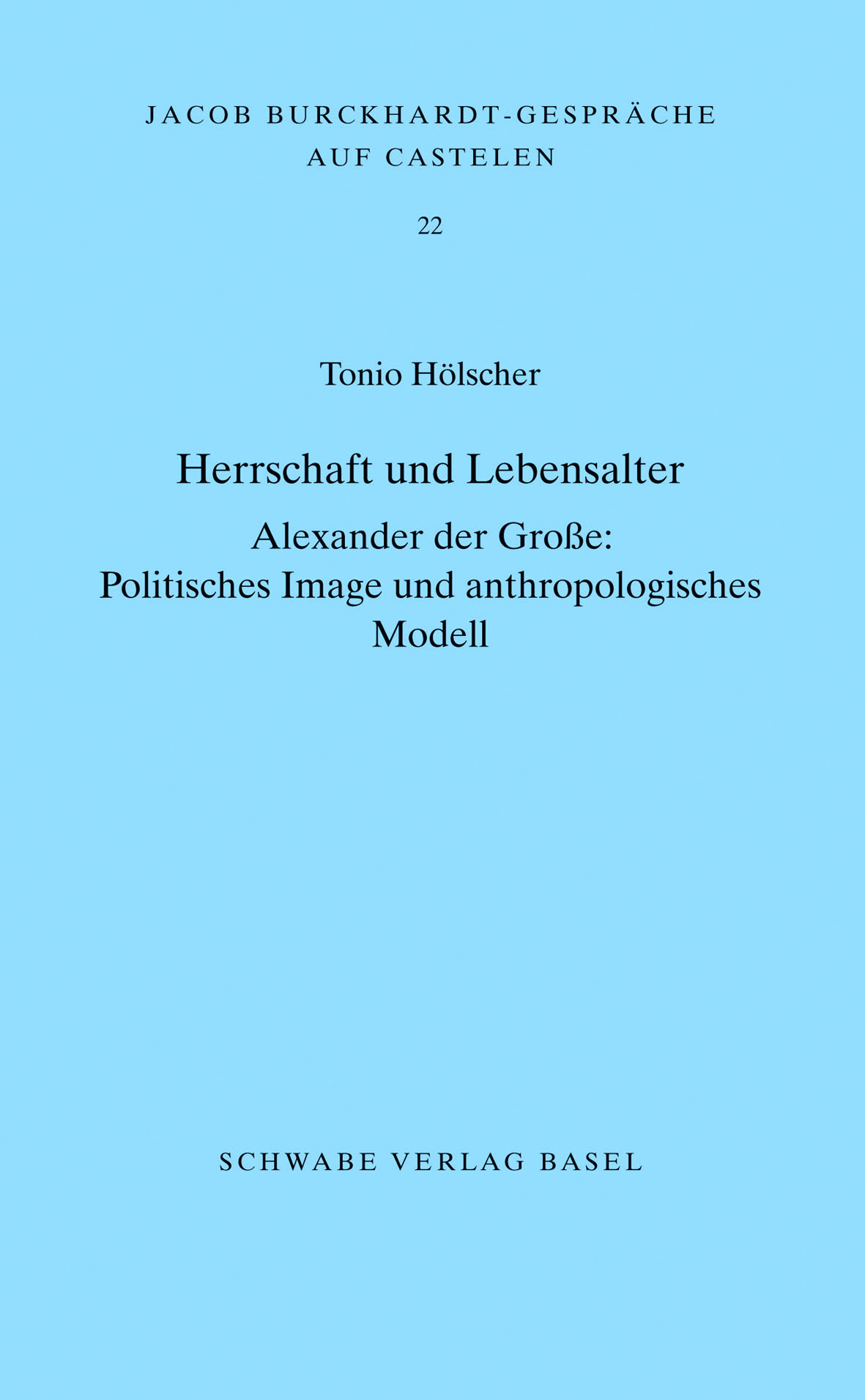 Im vorliegenden Band der Jacob Burckhardt-Gespräche auf Castelen untersucht Tonio Hölscher die verschiedenen Darstellungen Alexanders des Grossen entsprechend der Vorstellungen der damaligen Gesellschaft. Er stellt das Verhältnis zwischen dem selbstgestalteten Image Alexanders und dem Grundtypus der Bildnisse heraus. Anders als vorangehende Herrscher lässt sich Alexander als unbärtiger, junger Mann präsentieren, wodurch der Betrachter an mythische Helden, wie Iason oder Perseus erinnert wird. Mit dieser Art von Grundtypus wird das traditionelle Leitbild vom väterlichen Lenker durch das des jugendlichen Helden abgelöst. Hölschers Ausführungen regen über das Kernthema hinaus zur Reflexion über Darstellungen von Politikern der modernen Zeit an.