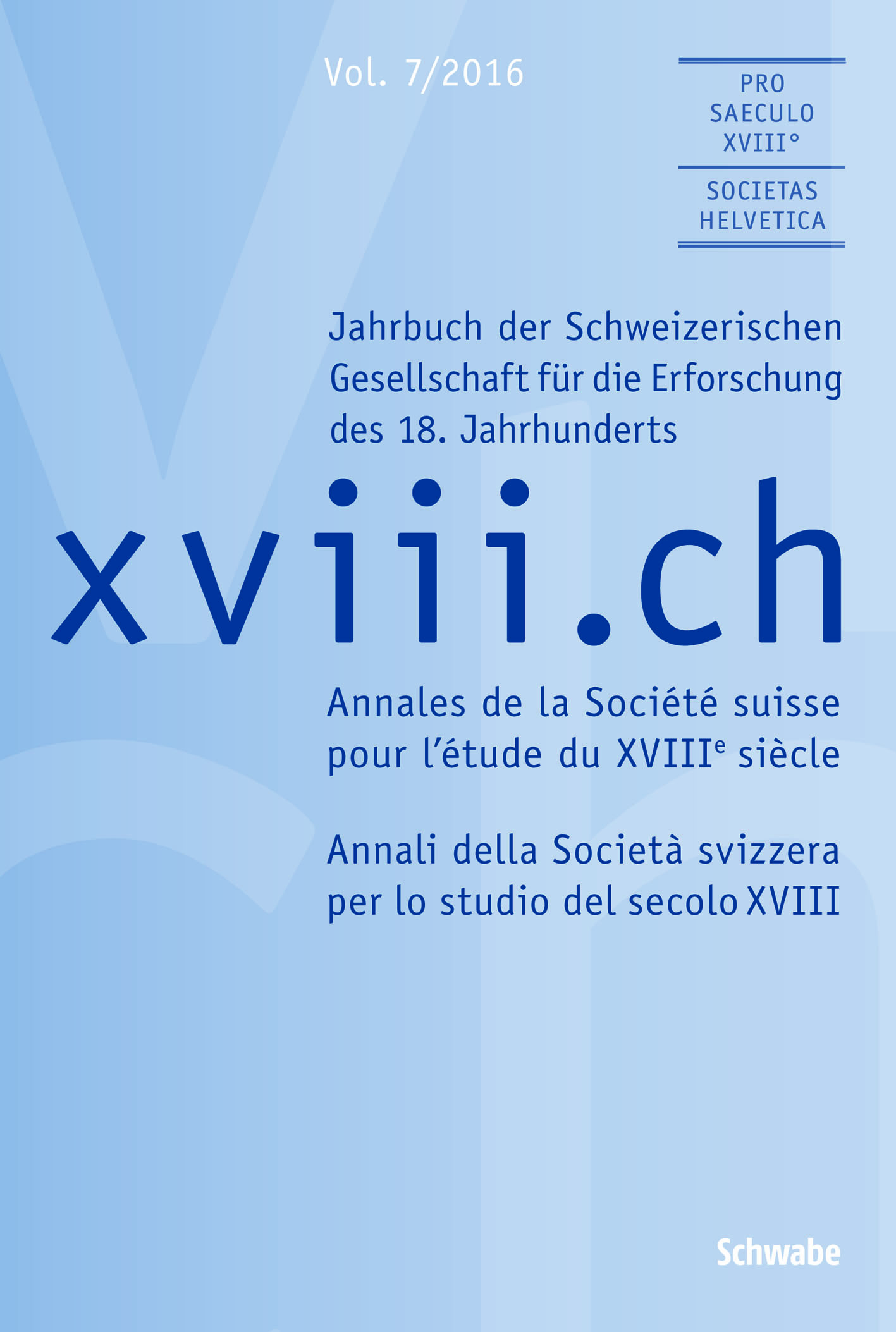 Das Jahrbuch der Schweizerischen Gesellschaft für die Erforschung des 18. Jahrhunderts ist weltweit die einzige wissenschaftliche Publikation, die sich der Erforschung der schweizerischen Aufklärung widmet. Anhand von Aufsätzen, Berichten, noch unveröffentlichten Quellen und Rezensionen gewährt die Zeitschrift einen breiten und mehrschichtigen Einblick in die aktuellste Forschung. Sie erscheint jährlich, alternierend als thematische Nummer, die durch einen Gastherausgeber verantwortet wird, und als ‘offenes’ bzw. ‘freies’ Heft. Die Letzteren bieten die Möglichkeit, Artikel zu publizieren, die aus verschiedenen disziplinären Perspektiven insbesondere das kulturelle, ökonomische, soziale und politische Leben in der Schweiz des 18. Jahrhunderts beleuchten.